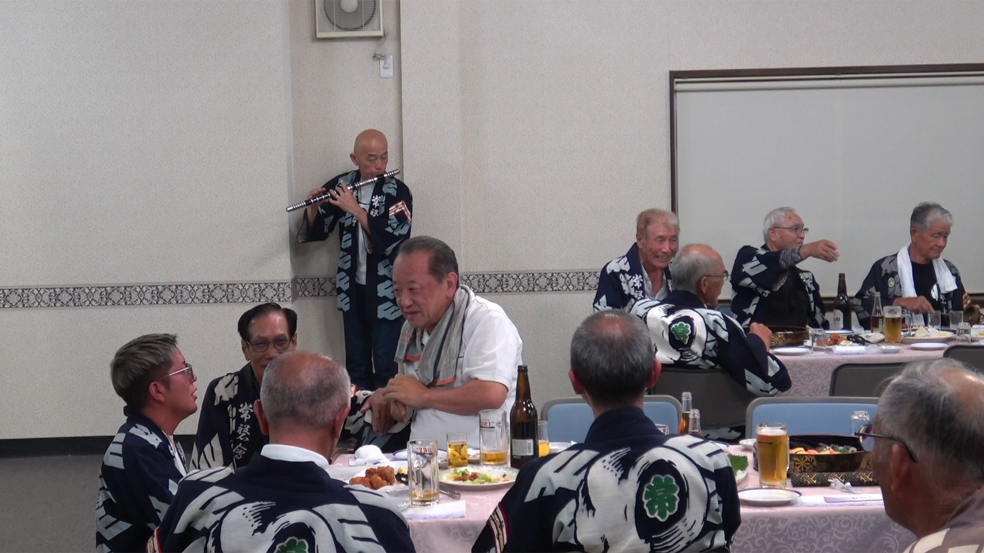 この日集まった会員たちが、冷たいビールを飲み料理を摘みながら、歓談したりお囃子を披露したりで、夏の夜の宴を堪能しました。