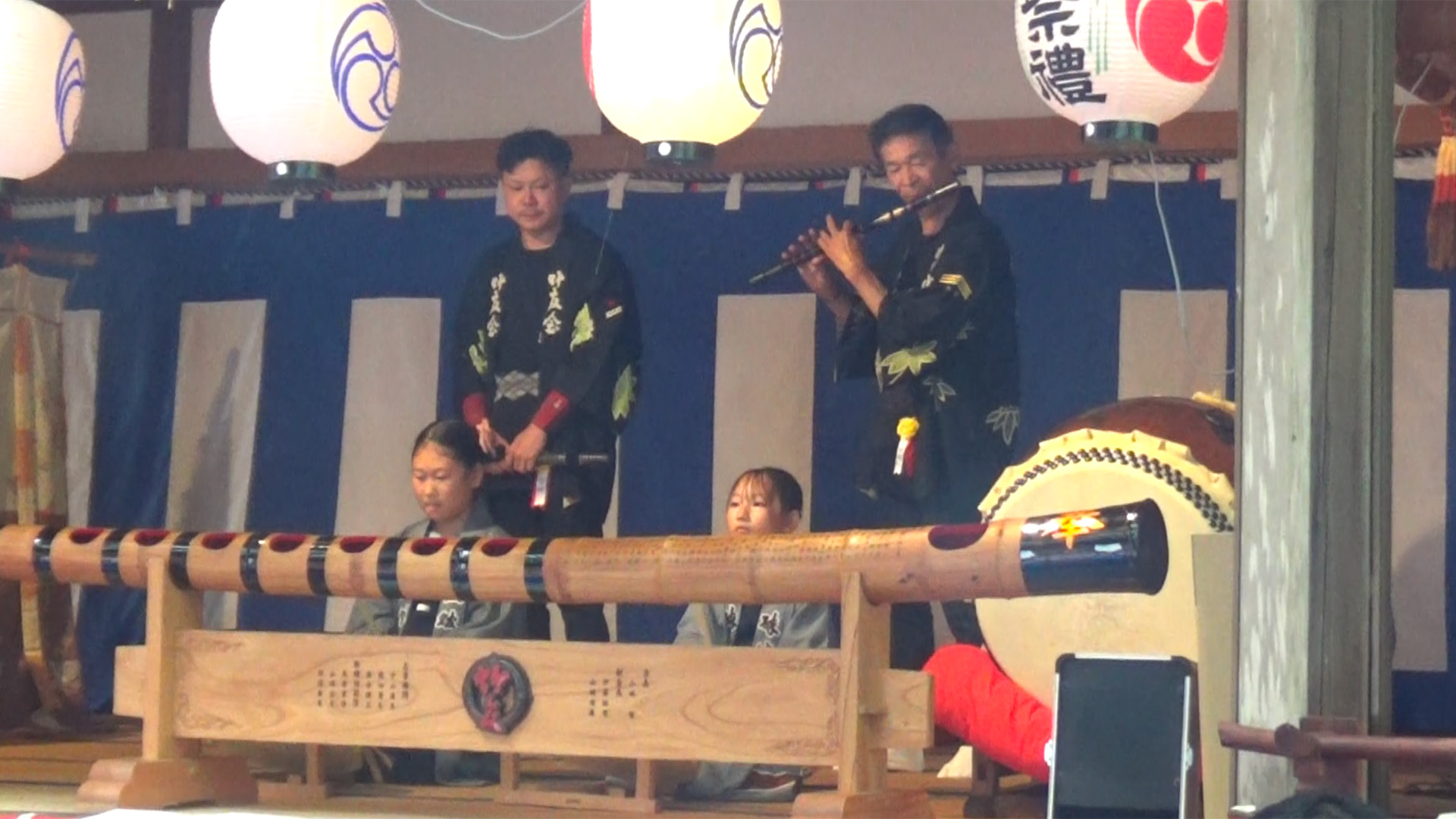 祭典2日目のこの日、事任八幡宮境内にてお昼頃から行われる「大笛祭」では、参加8町内のお囃子の披露や、常磐会の友好団体でもある「竹友会」の奉納囃子が披露され、その様子を撮影してきました。