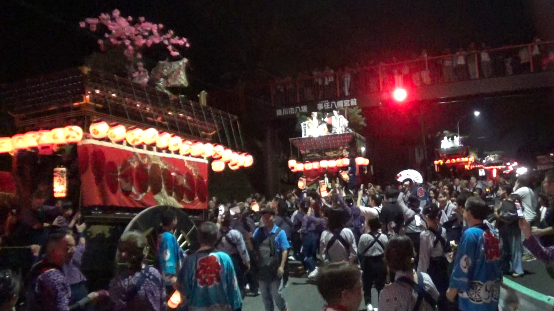 お祭り最終日の夜の屋台曳き廻しとお囃子の様子を、取材班が撮影をしてきました。